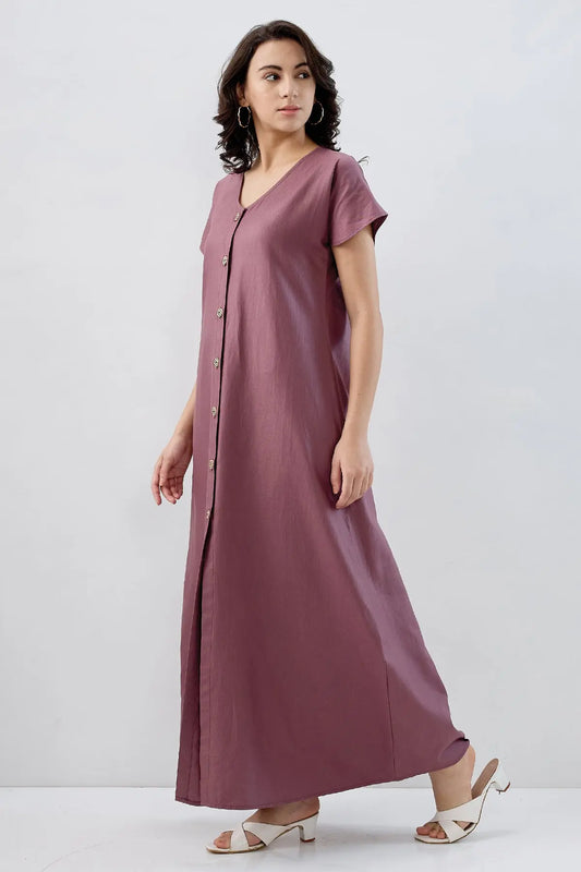 Aubergine Cotton Button Dress