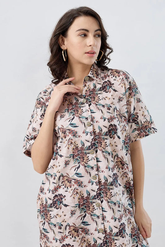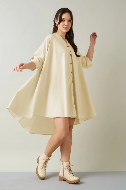 Beige Cotton Oversized Dress