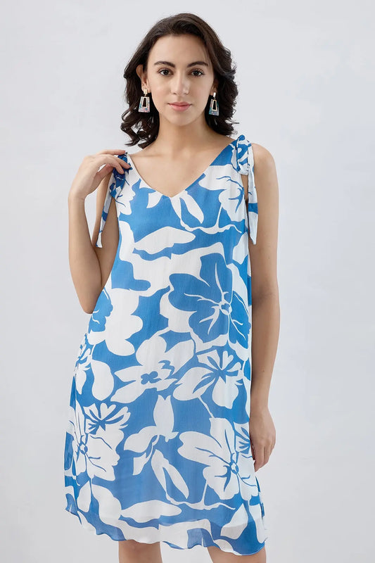 Blue White Tie Knot Mini Dress
