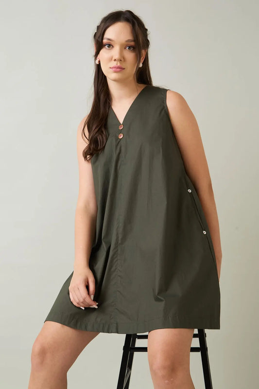 Green Cotton Sleeveless Dress