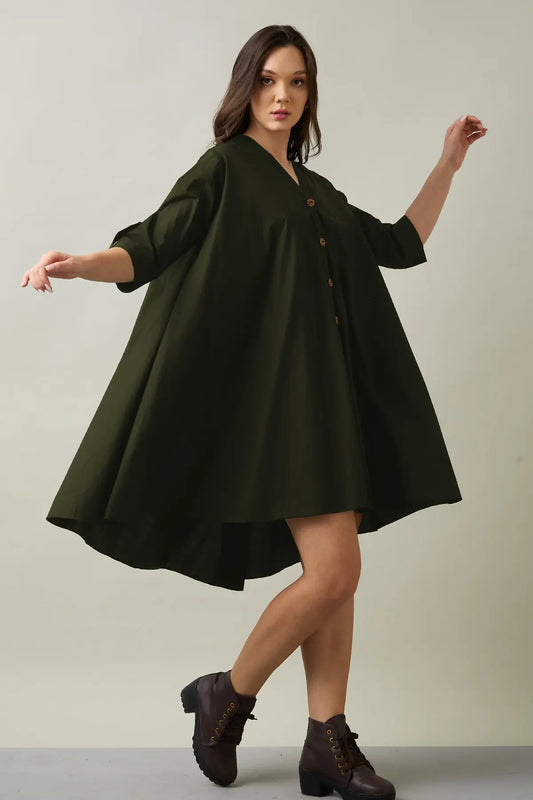 Green Cotton Oversized Dress