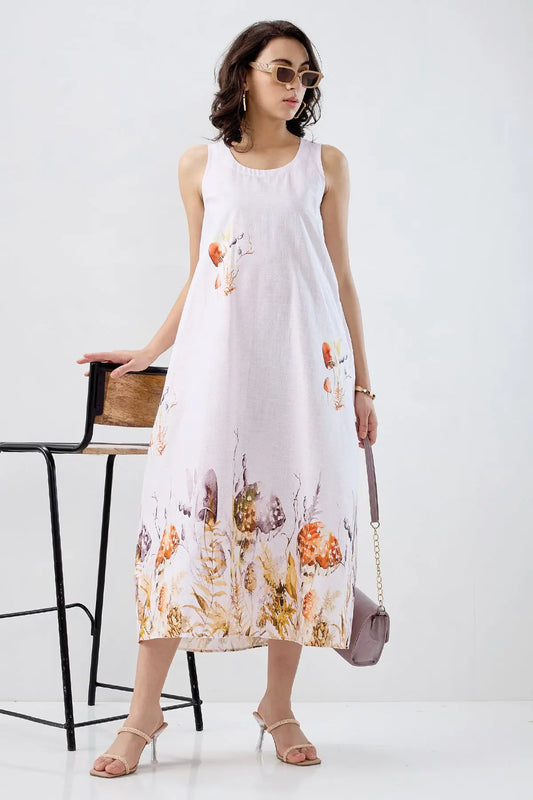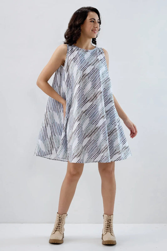 Multi White Cotton Flare Dress