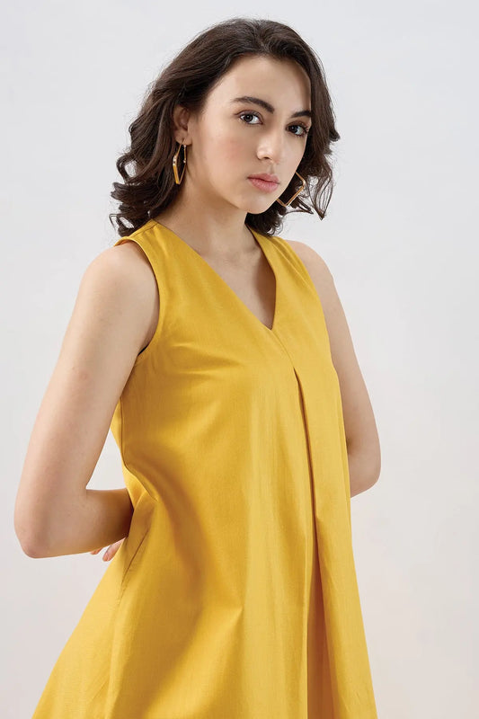 Mustard Box Pleat Cotton Dress