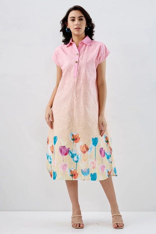 Ombre Tulip Print Cotton Dress