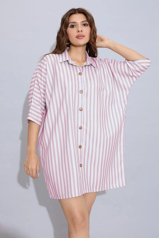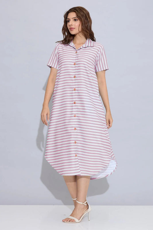 Pink Stripe Cotton Shirt Dress