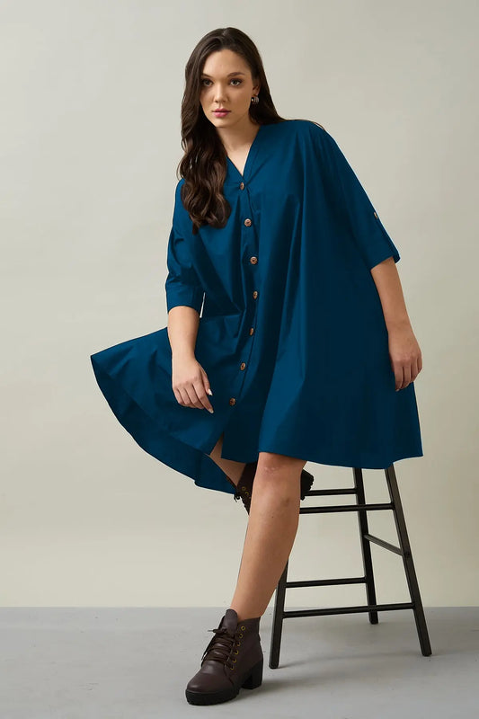 Teal Blue Cotton Oversize Dress
