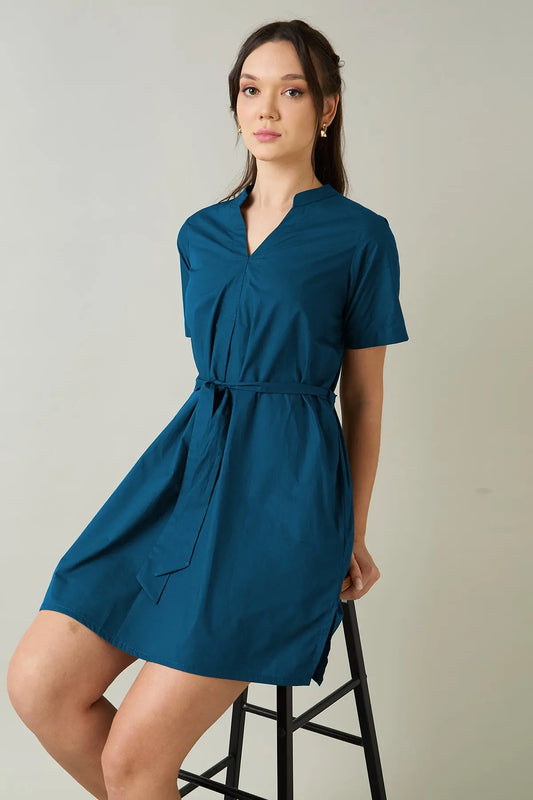 Teal Cotton Mini Dress & Belt