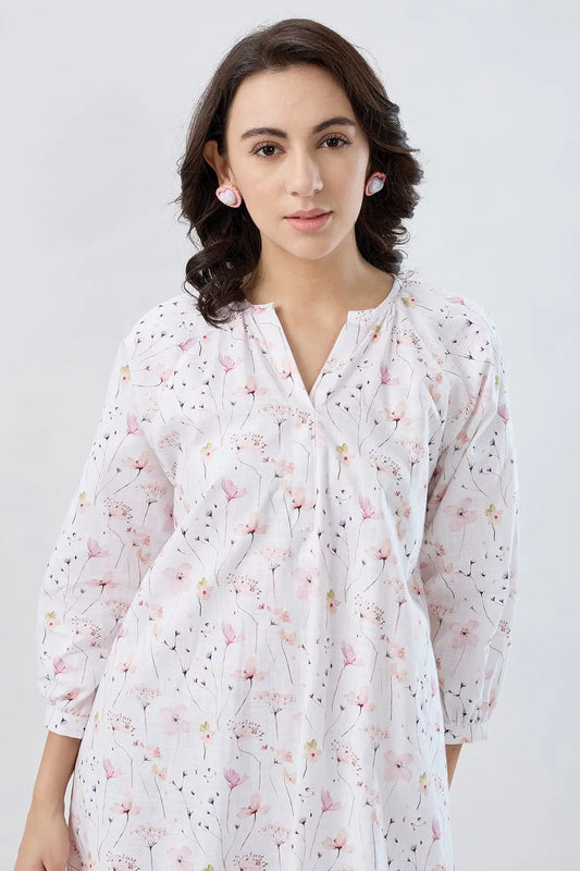 White Floral Cotton Mini Dress