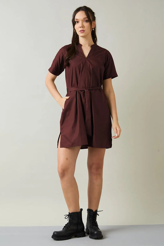 Wine Cotton Mini Dress & Belt