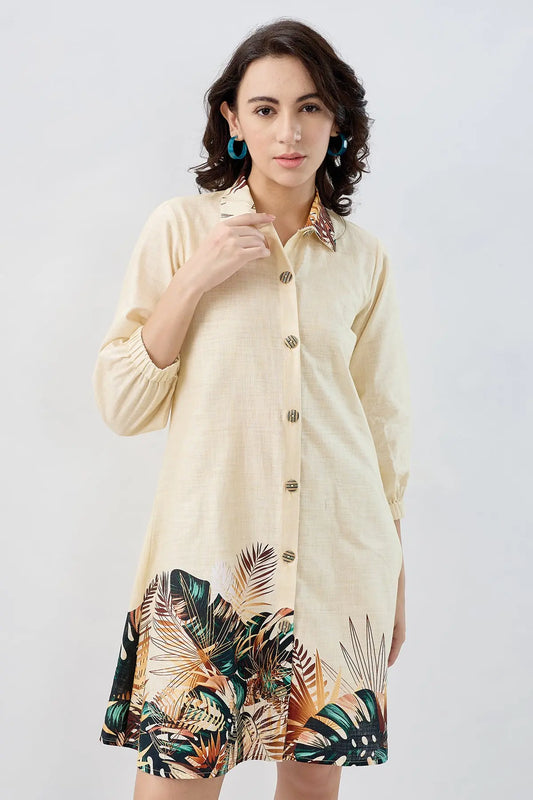 Yellow Leaf Cotton Shirt Dress