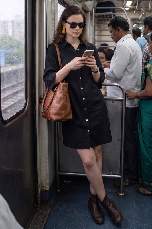 Black Button Collar Shirt Dress