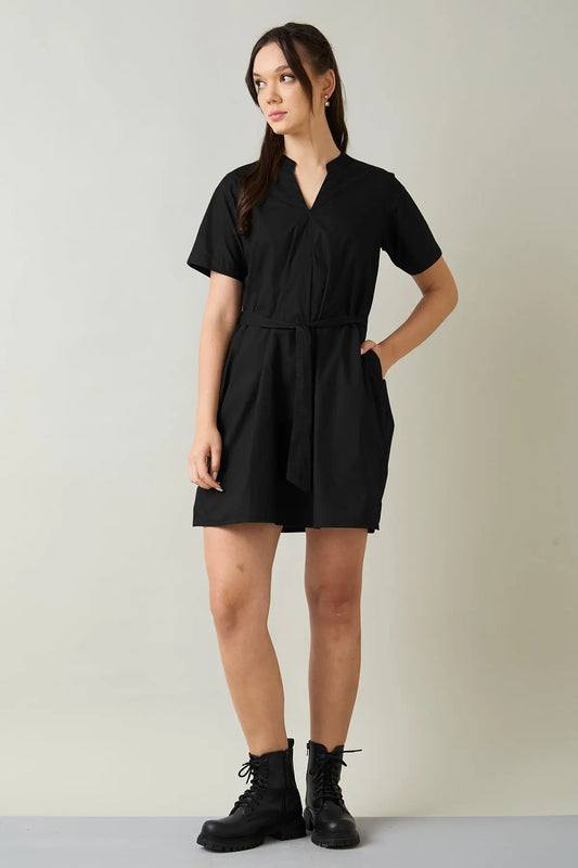 Black Cotton Mini Dress & Belt