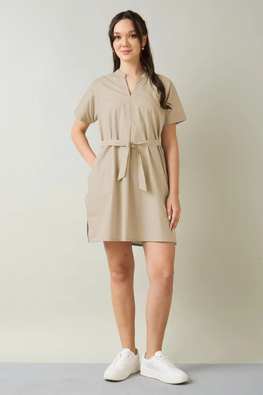 Dark Beige Cotton Dress & Belt