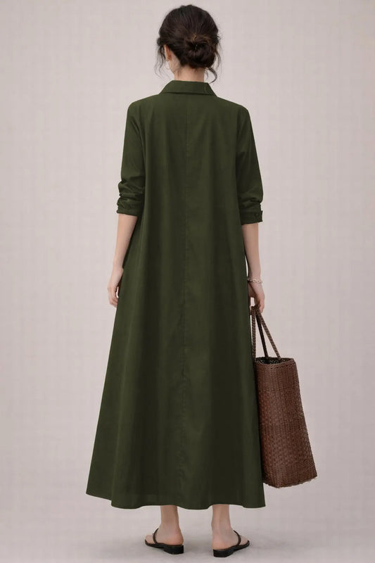 Green Cotton Maxi Shirt Dress