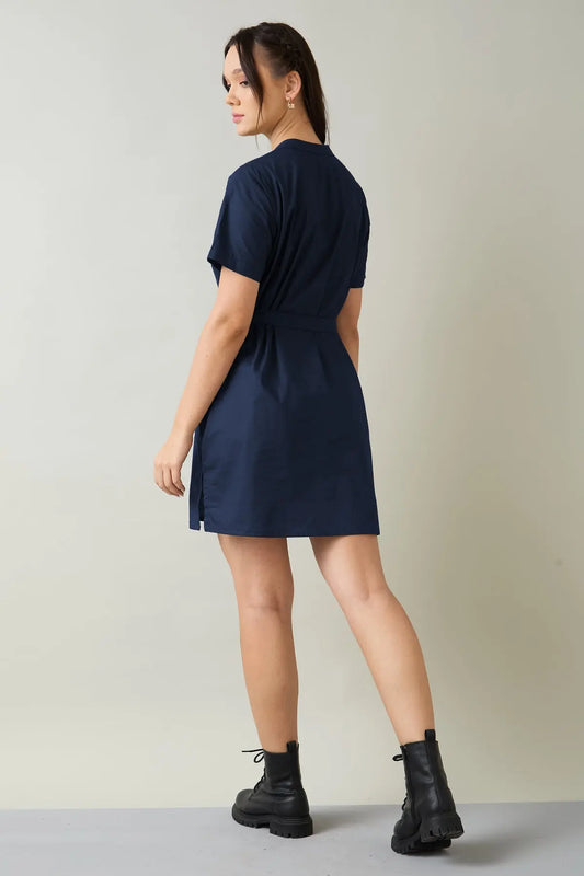 Navy Cotton Mini Dress & Belt