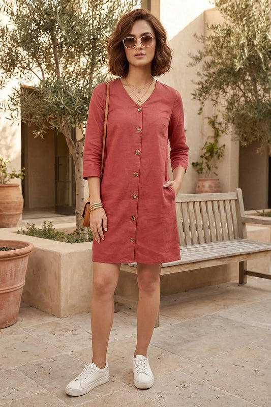 Red Cotton Linen Mini Dress